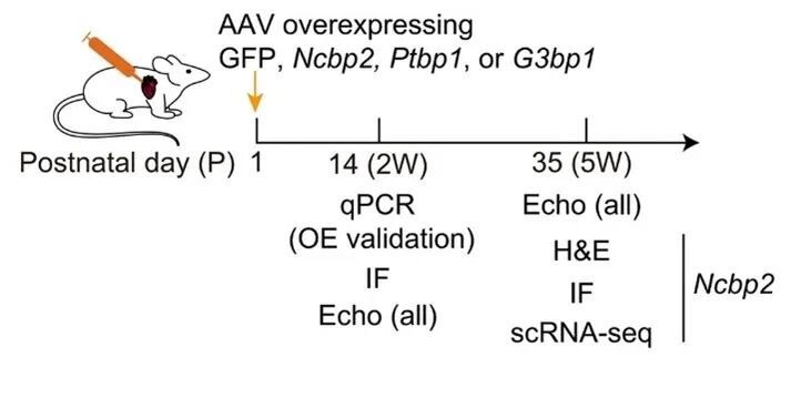为验证NCBP2在体内的功能,研究团队通过腺相关病毒(AAV)在新生小鼠(P1)心脏中过表达NCBP2,观察心脏成熟过程。