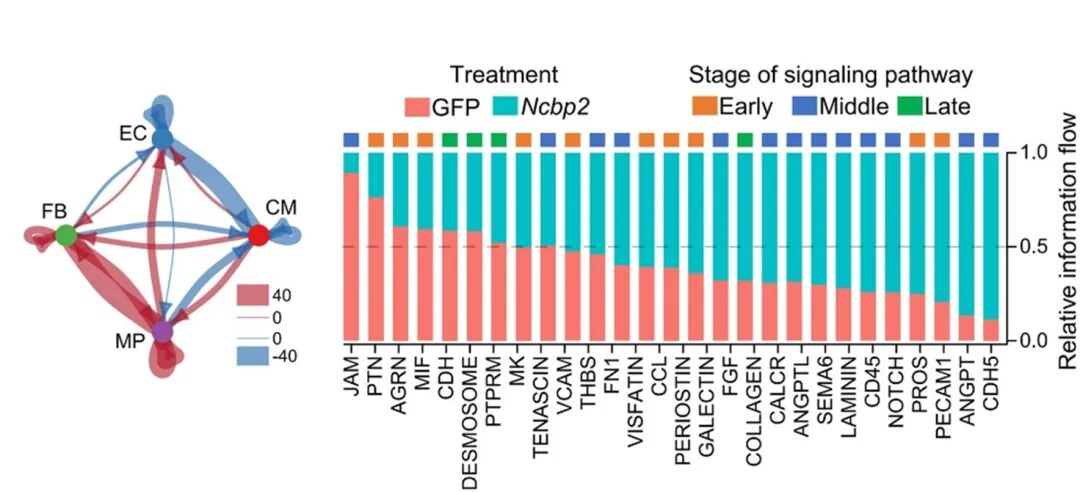 NCBP2过表达导致129个配体-受体对上调,88个下调,其中94.4%的优势信号通路为早期和中期特异性通路,维持未成熟的细胞通讯模式。