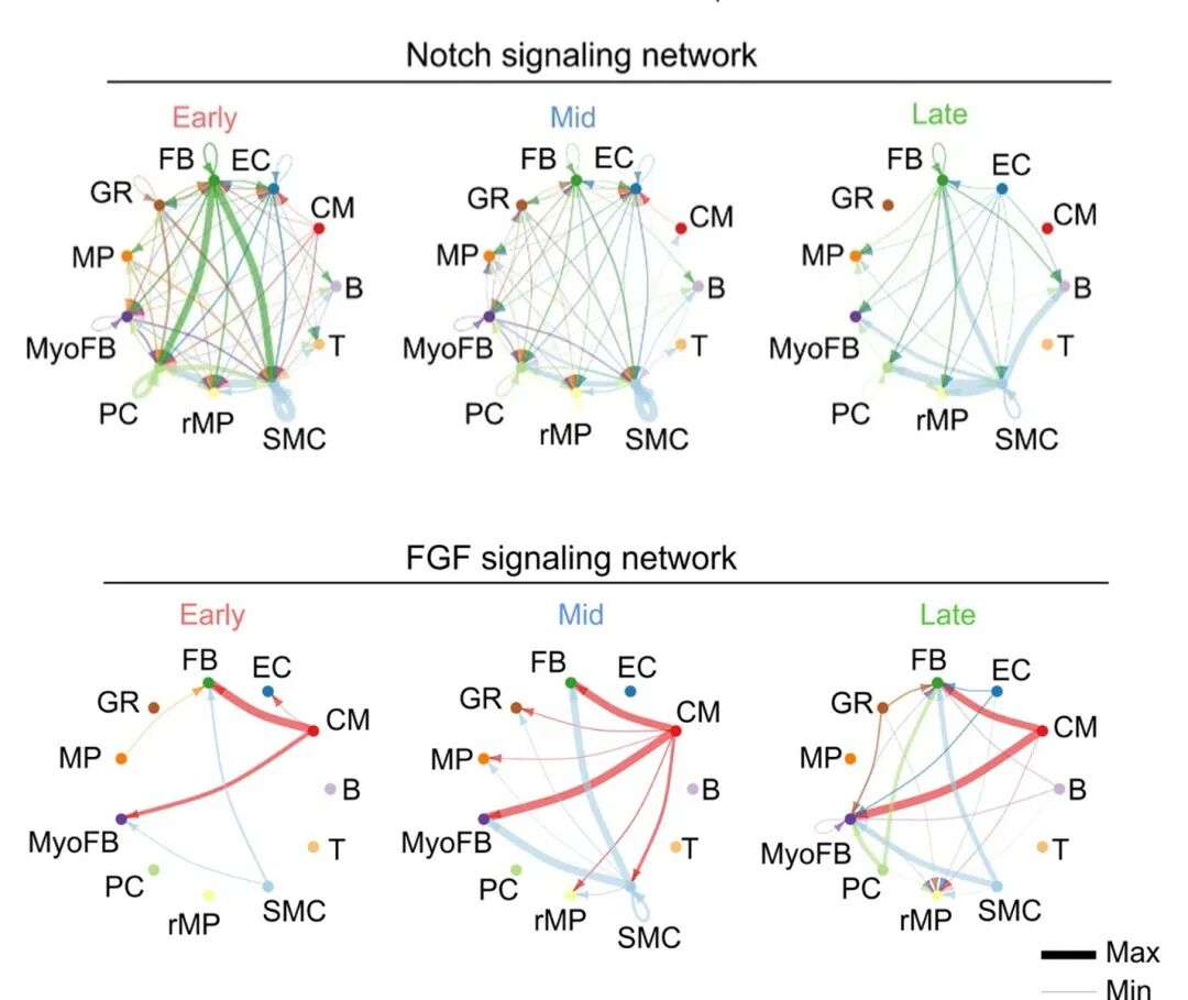 核心发现一:细胞互作“动态重塑”,FGF信号成“保护屏障”