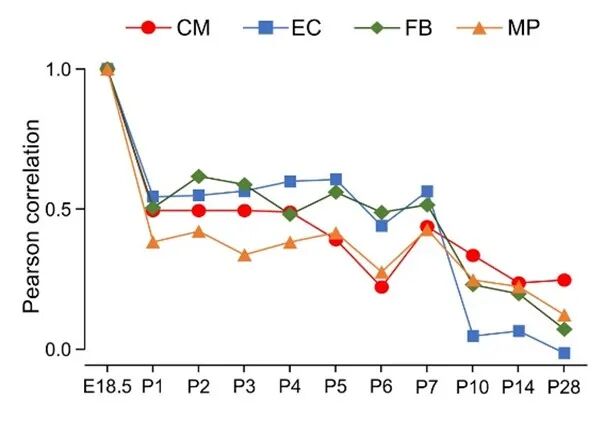 哺乳动物出生后,心脏需经历从胚胎型到成熟型的剧烈转变,包括细胞结构重塑、代谢模式切换及功能完善[2]。此前研究多聚焦于心肌细胞的成熟调控,却忽视了成纤维细胞、内皮细胞等非心肌细胞的作用,且缺乏对全器官层面统一调控机制的解析。