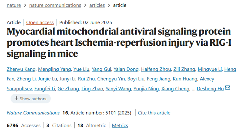 心肌线粒体抗病毒信号蛋白MAVS通过RIG-I通路介导缺血再灌注损伤的机制研究