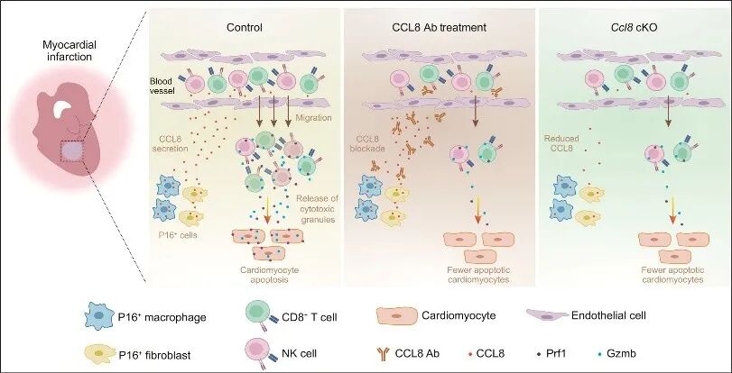 Yan, L., et al., P16(+) Cells Drive Adverse Postischemic Cardiac Remodeling Through CCL8-Mediated Recruitment of Cytotoxic Lymphocytes. Circulation, 2026.